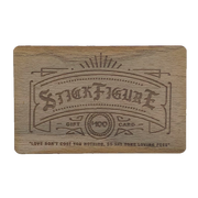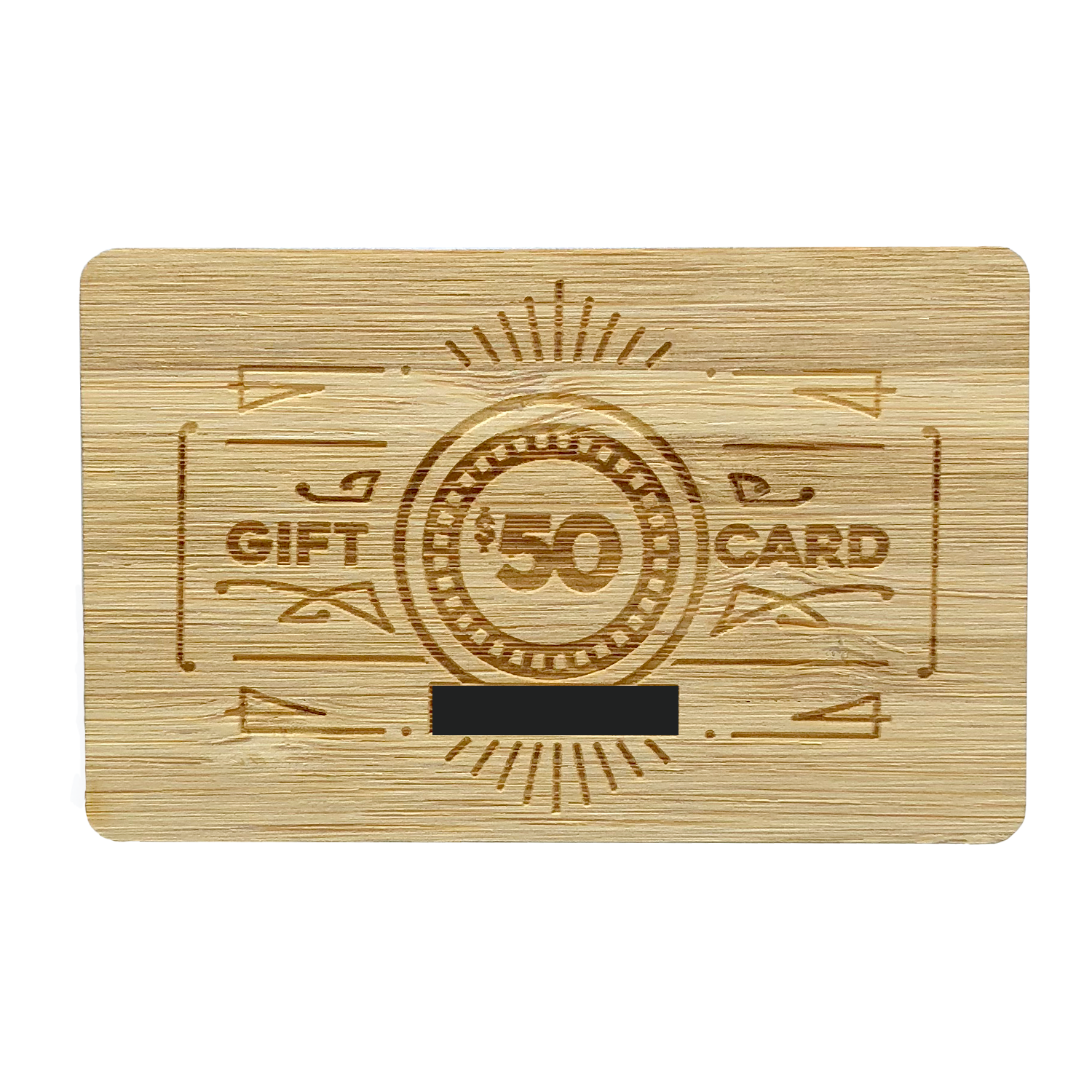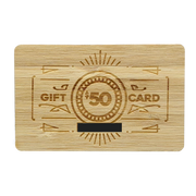 A redeemable gift card code will be emailed to you within 1 business day contain instructions to redeem them at checkout. $50 and $100 gift cards will receive a physical gift card by mail made out of wood with the gift card code etched onto the back.