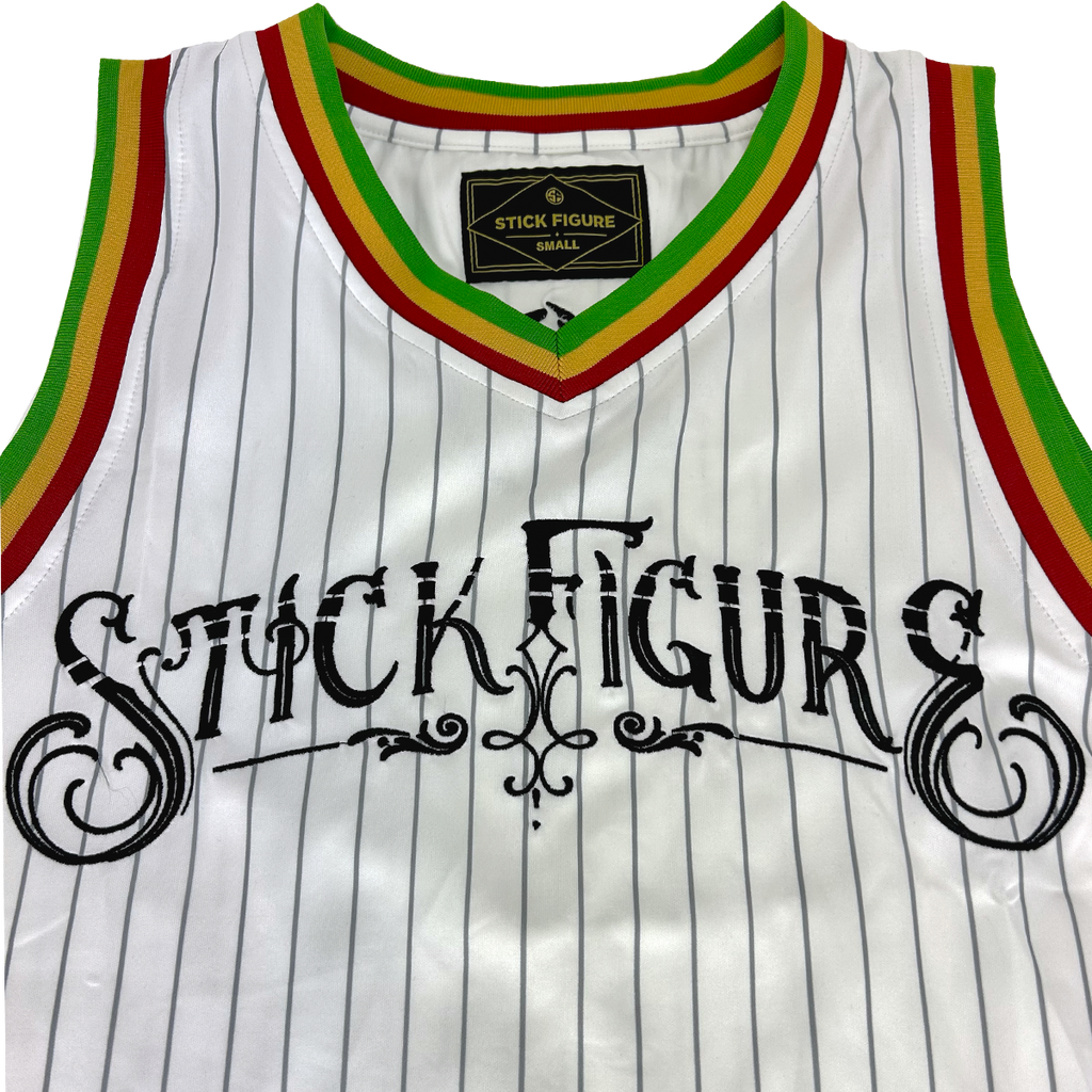 Stick Figure Pinstripe Embroidered Jersey (White)