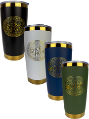 Stainless steel drink tumbler with a raised logo. Available in 4 different color options.